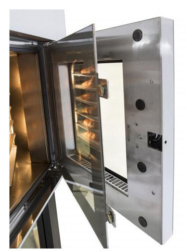 Ротационная печь может быть дополнительно оборудована встроенной расстойной камерой. Камера оборудована раздвижными дверцами из стекла и снабжена подсветкой для наблюдения за процессом расстойки.